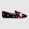 Made in plush velvet embroidered with gold bees and stars, this ballet flat features twisted piping and an oversized Sylvie Web bow.