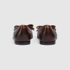 Precious details elevate streamlined silhouettes. Envisioned through a romantic lens, snakeskin trims are formed into a layered bow detail that embellishes the toe of the leather ballet flat with the GG mirrored detail at the center—an archival reprisal of the House’s signature emblem.