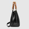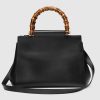 A small structured leather top handle bag with bamboo handles featuring cream pearl details, referencing Greek and Latin myths surrounding the pearl and water lily-an aquatic plant part of the Nymphaea genus. Made in incredibly soft leather with a natural shine and supple appearance.